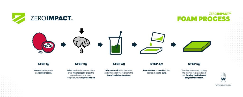 Chez Watson Gloves, le développement durable n'est pas une mode, mais une responsabilité. C'est pourquoi nous avons mis au point ZeroImpact™, notre dernière innovation en matière de protection des mains durable, conçue pour offrir impact excellente impact tout en réduisant le recours aux matériaux dérivés du pétrole.