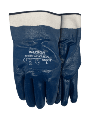 Heavy duty nitrile coating 100% cotton interlock shell Offering resistance to oils, acids, caustics and alcohols Slip-on style safety cuff