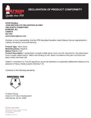 These gloves have been nothing but amazing to me! They provide countless hours of comfort and great protection from heat and spatter. I will always be stocked up and as a welder Watson will always be my go to gloves. i know I’ll never switch from Watson!