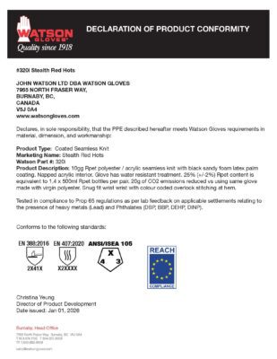 10g WasteNot™ polyester seamless knit made from 25% (+/- 2%) recycled post consumer PET bottles