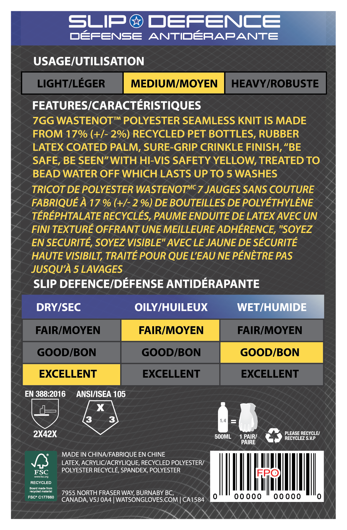 7g seamless knit is comprised of 17% (+/- 2%) WasteNot™ polyester (by weight) which is made from recycled post consumer PET bottles