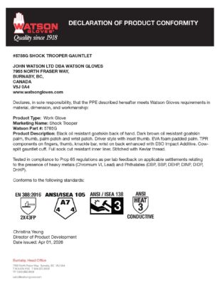 Dryhide™ water and oil resistant full-grain goatskin leather palm and back of hand