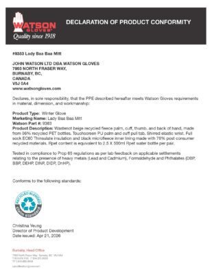 3M Recycled Thinsulate™ EC60 lining is made with 78% post consumer recycled materials
