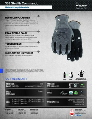 338 Stealth Commando High Gauge Sustainable Work Glove Spec Sheet