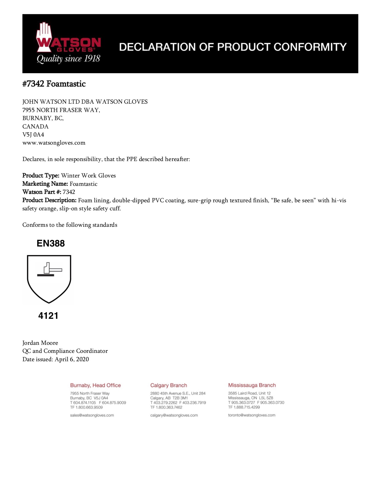 7342 Foamtastic Declaration of Product Conformity